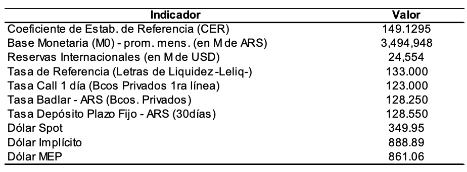 Indicadores monetarios
