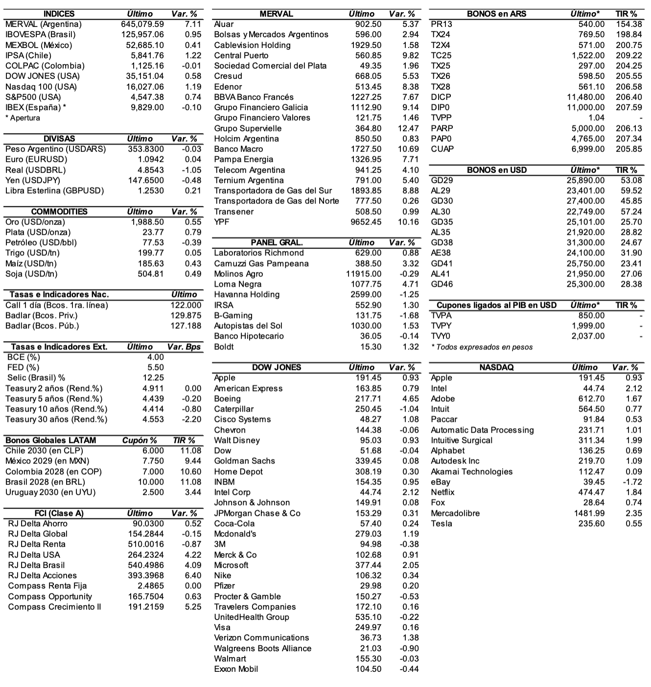 Es que los inversores ven positivo un nuevo rumbo político, con reformas económicas y apertura de mercado. El mercado sugiere un cierto optimismo respecto a una visión de un Estado más reducido, una mayor expansión al sector privado, y una posible privatización de YPF en un futuro. En este contexto, esperamos que las subas observadas en Nueva York ayer, se vean reflejadas hoy en el mercado local, tras el feriado bursátil local del lunes.