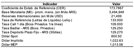 El tipo de cambio mayorista aumentó 55 centavos (+0,1%) y cerró en USDARS 800,50 (vendedor), en un marco en el que el BCRA compró USD 236 M, y acumuló USD 520 M en las últimas dos ruedas.