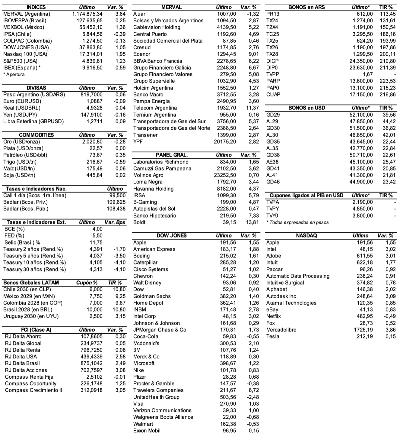 Cerraron en baja: Despegar (DESP) -5,5%, Ternium (TX) -5,4%, Adecoagro (AGRO) -4,9%, Corporación América (CAAP) -3,1%, y Globant (GLOB) -2%, entre otras.
